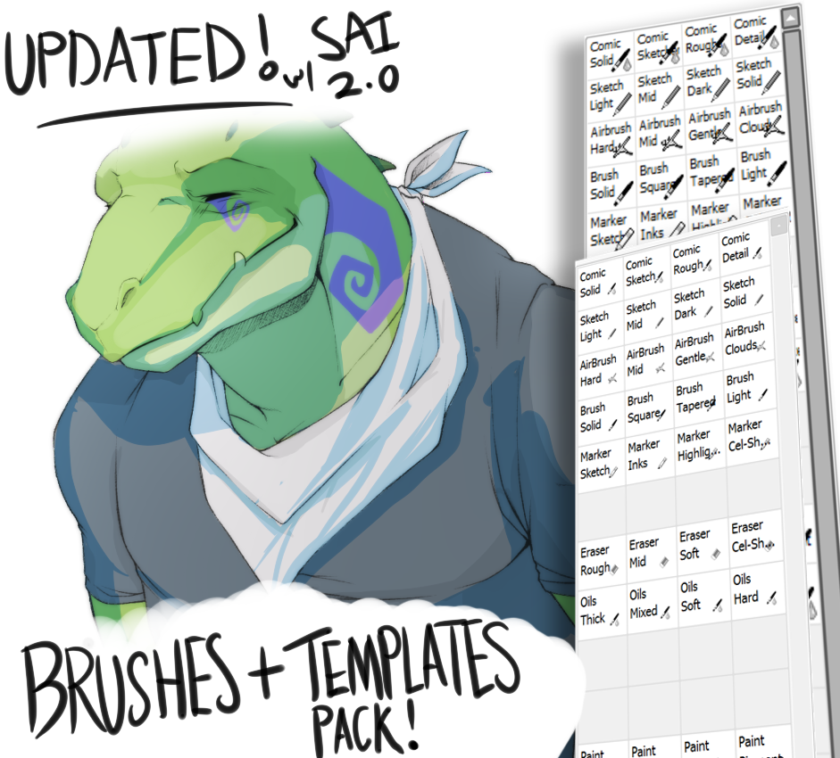 Introducing Luvbites: Artist Starter Pack! A downloadable zip file containing a set of special, custom brushes for Paint Tool SAI, and a set of template files for both the soft shading, and harder cel-shading styles seen on the site!